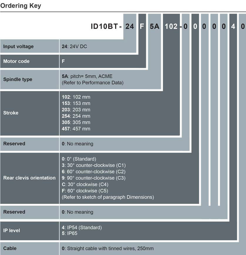 | Varianter | Generera CAD | IP-klass | Nominell hastighet, full last | Nominell hastighet, obelastad | Självhämning | Slaglängd | Slaglängd max | Slaglängd min | Spänning DC | Pris/enhet | ||
